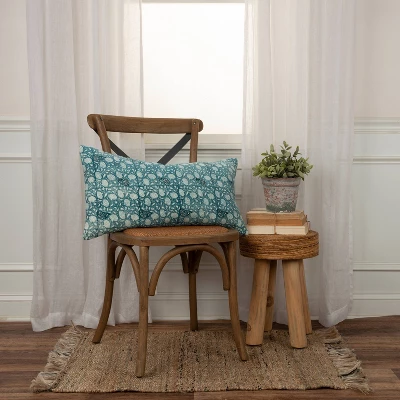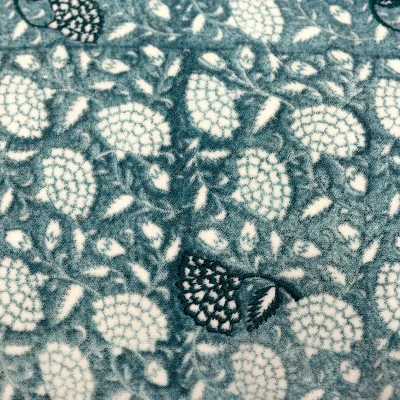 This block print botaical pattern brings delicate sweeping pattern to this velvet pillow. Embroidered accents in more saturated color of the face adds a refined touch to this wonderfully skin-friendly soft cotton velvet. Knife edged, this pillow features a coordinating solid cotton back with a hidden zipper closure for ease of fill.