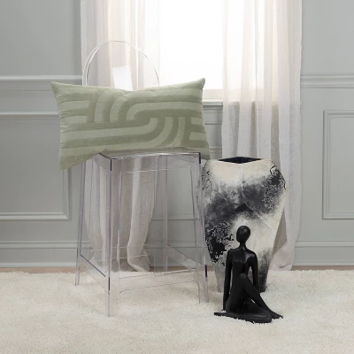 14″x26″ Oversized Solid Striped Poly Filled Lumbar Throw Pillow Green – Rizzy Home