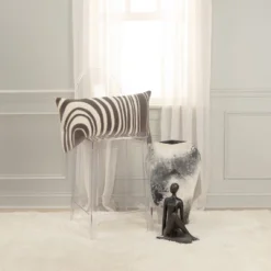 This contemporary pillow features a knife edge construction. Appliqued cotton velvet onto a cotton base creates an abstract patterning that is strong when the saturated colors are married with the clean ivory cotton base. Satin embroidery stitchery secures this applique to the base. This abstract pattern is at home in minimalistic living spaces as well as those where the wall art and the textile art takes center stage. The back of this pillow is a solid coordinating back featuring a hidden zipper closure for ease of fill.