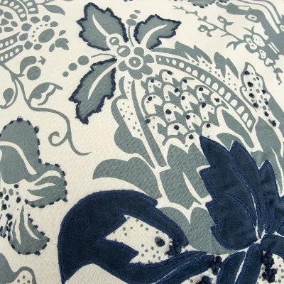 This stunning Rizzy Home decorative throw pillow will make a gorgeous design statement in any decor. Shabby chic meets urban farmhouse. Crafted from a navy blue, white, ivory and indigo color palette, this pillow features hand-tied French knot accents and a knife-edged construction. The back boasts a solid coordinating fabric with a hidden zipper closure. Embroidered accents and applique navy cotton velvet with embroidery stitch edging make this pillow truly special in a floral inspired motif. Whether you use this pillow as an accent piece in your living room or as a beautiful detail in your bedroom, this statement throw pillow will elevate any interior space.
