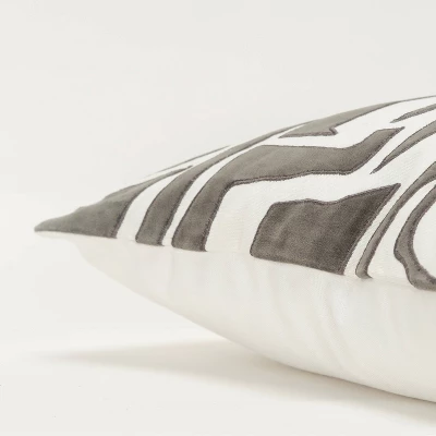 This contemporary pillow features a knife edge construction. Appliqued cotton velvet onto a cotton base creates an abstract patterning that is strong when the saturated colors are married with the clean ivory cotton base. Satin embroidery stitchery secures this applique to the base. This abstract pattern is at home in minimalistic living spaces as well as those where the wall art and the textile art takes center stage. The back of this pillow is a solid coordinating back featuring a hidden zipper closure for ease of fill.