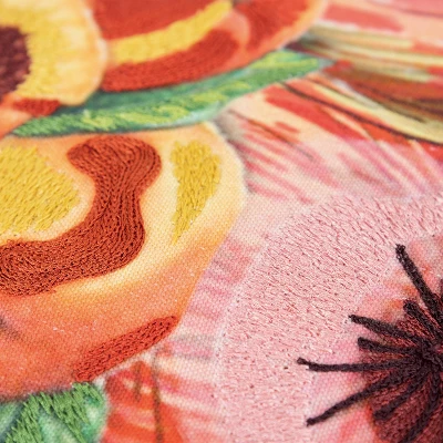 Be captivated by the modern farmhouse vibes of this Rizzy Home accent pillow. This colorful pillow is an amazing 20″ x 20″ in size and made of 100% cotton duck fabric with a combination of a unique digital print and intricate embroidery featuring bold and vibrant colors like red, pink, peach, green, and brown. Perfect for adding a bit of texture and charm to your living room or seating area in the kitchen, this pillow showcases a medley of beautiful fruit and a pinecone for a subtle touch of modern farmhouse flair. Hand and machine embroidered accents create soft texture and dimension to this stylish pillow that will work well alone, or ideally layered with other styles and textures to create your own personal style element.
