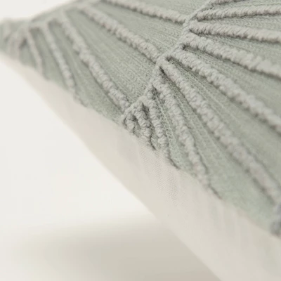 This pillow is luxuriously fashioned to add a kiss of glamour to any décor. This pillow is totally covered in directional machine crewel embroidery. This allows the fan shapes to appear to be strewn across the pillow face. The fan or shell shapes are outlined by the application of dimensional cotton chord. This pillow is inner lined to provide stabilization for ALL this stitchery. This pillow is a wonderful hint of subtle sheen and is a wonderful addition to any living space where a little “jewelry” finishes the space beautifully. The back of this knife edged pillow is a solid coordinating cotton with a hidden zipper closure.