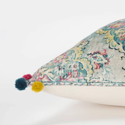 Bring an eclectic blend of comfort and style to your home décor with the Rizzy Home 20″ x 20″ soft cotton and viscose blend velvet pillow. Boasting an eye-catching mix of modern urban farmhouse and boho chic style, this pillow features an intricate medallion pattern in shades of teal, yellow, pink, navy, and light blue that give it a beautiful vintage flair. Triple pom pom embellishments in each corner and a soft, light sheen provide just the right amount of fun, whimsical character to your living space.