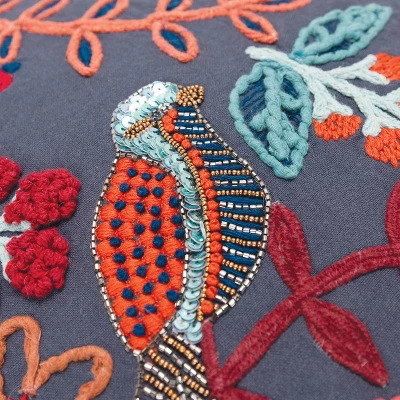 Texturally heavy embroidery provides dimension and realistic patterning to this botanical pillow, full of vining and wonderfully traditional blooms. Crafted and sporting a soft color palette, this pillow is a delightful addition to any décor. Knife edged; this pillow features a coordinating solid back with a hidden zipper closure for ease of fill.