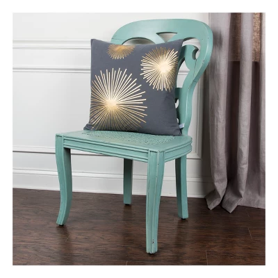 Awesome starbursts of shimmering gold adorn the top of this Rizzy Home Rachel Kate Dark Gray and Metallic Gold Square Abstract Throw Pillow. This pillow is definitely a showpiece for any room in your home or office décor. The back of the pillow is made of a matching, solid cotton fabric and is zippered for access to the fill; plus it is finished with a clean knife edge. Place this pillow on a sofa, chair, or bed for a burst of light.