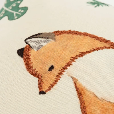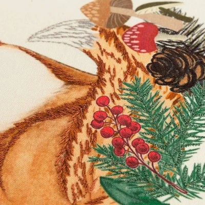 Woodland Animals bring a kiss of nostalgia during the holiday season. Embroidered evergreens and berries create a beautiful holiday theme for this little fox. Embroidered accents create a light texture to the leaves and plant life as well as create dimensional fur textures. This woodland fox brings a modern vibe and a conservationist appeal to honor wildlife and that holiday woodland animal appeal. knife edged, this pillow also features the same fabric solid for the back with a hidden zipper closure.