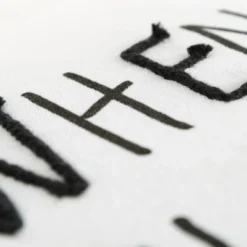 Some days are best started over. . .. From a nap! Rope embroidery with slightly fringed ends gives this pillow dimension and fun texture to this sentiment. A self-flange of crisp white cotton duck frames this sentiment. A matching solid back features a hidden zipper closure for ease of fill.