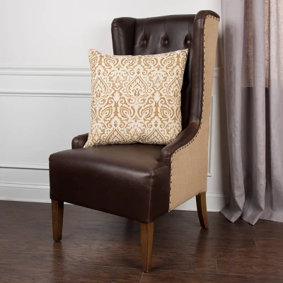 Create classically chic elegance with the Rizzy Home gold and ivory 22” x 22” decorative pillow. With a light textured distressed print pattern, this elegant accent pillow features a great scale of pattern to enhance and elevate color in any room. Finished in a hidden zipper closure and crafted from 100% cotton, this statement pillow brings the perfect finishing touch to any refined interior.