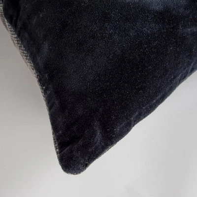 This pillow has two distinct sides, each with its own set of amazing features. The one is woven cotton and while soft, heavily textured. The reverse is the softest cotton velvet. One side bears a hidden zipper closure in the bottom but both sides are constructed to be visible making this pillow reversible.