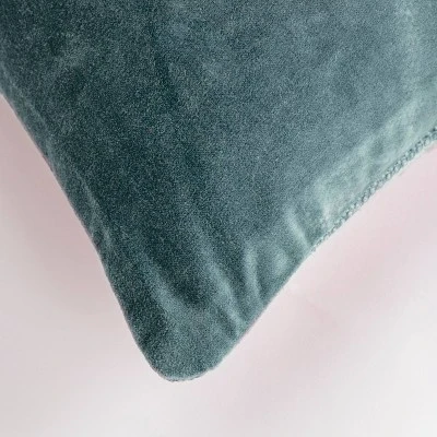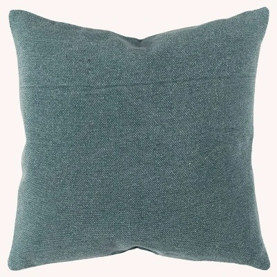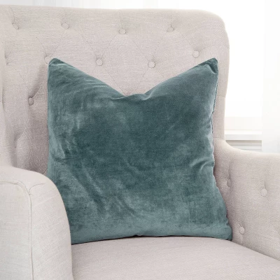 Appealing versatility allows this Rizzy Home Blue Square Solid Reversible Throw Pillow to be at home in many spaces of your home. One side of the pillow is a soft cotton velvet that will blend with other pieces in a formal setting, and the flip-side has a relaxed, casual look. Finished with a knife edge and hidden zipper, this pillow is large and is a great base piece for an arrangement.
