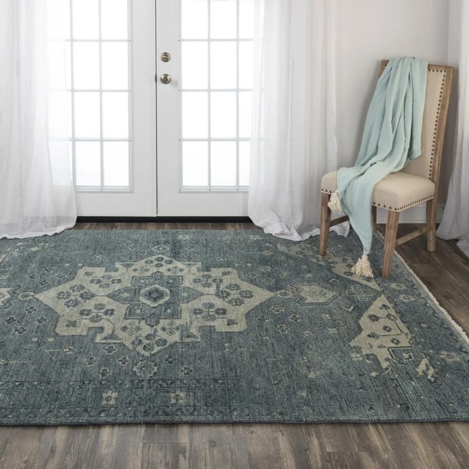 In the tradition of true craftsmanship, this ravishing Rizzy Home Belmont Blue and Ivory Medallion Rug is made with 100-percent hand-spun wool and features hand-knotted construction. At first glance, your eye will be drawn to the complete medallion in the center of the rug, then it will expand to include the more subtle edges. This rug is a splendid addition to your living room, bedroom, or formal dining room with its shades of blue.