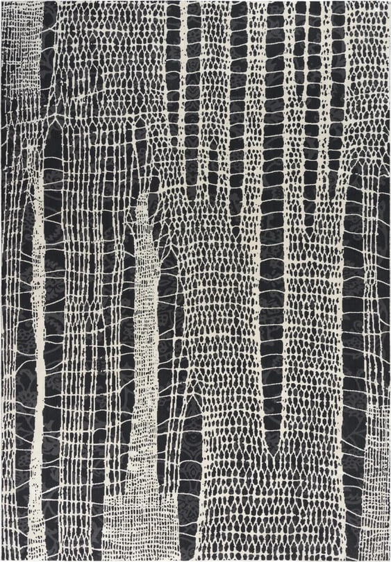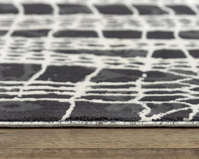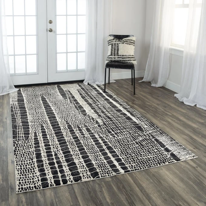A unique portrayal of a webbed pattern is done on this modern black, grey, and white Rizzy Home Emerge Rug. The 100-percent polyester fiber on this piece is extra soft , mimicking soft silk. The low pile on this rug gives a smooth, refined finish to a piece of artwork that will make your space outstanding and stylish.