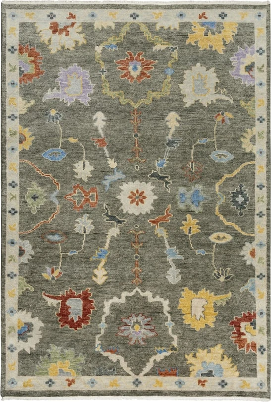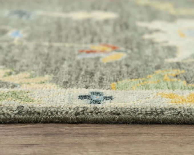 A field of flowers sway in a field of grey on this Rizzy Home Envision Classic Persian Rug. Draw out the blue, yellow, apricot, or green colors with furniture or an accent piece in your transitional or traditional style home or office décor. This fanciful rug is made with 100-percent hand-spun wool that has also been hand-washed and hand-knotted to produce a quality product. It is completed with an intricate woven fringe.