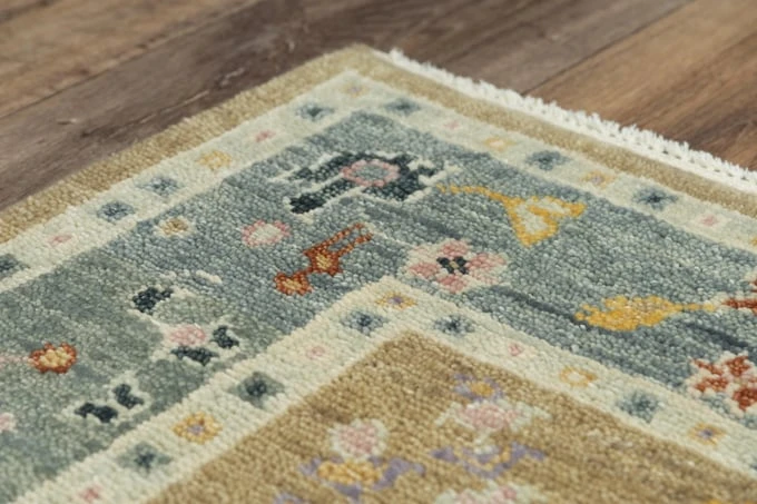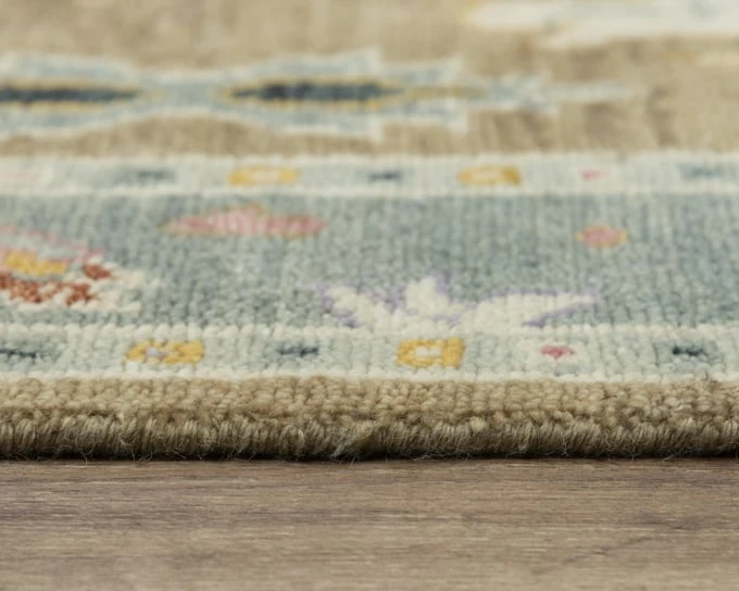 A warm toast background has varied sizes of flowers and leaves spread throughout while the grey borders are lively sprinkled with more. Feast your eyes on the yellow, lavender, apricot, and peach florals on this Rizzy Home Envision Floral Rug. Hand-crafted from hand-spun 100-percent wool. This rug will be an enticing finish for your traditional or transitional style home or office décor.