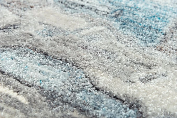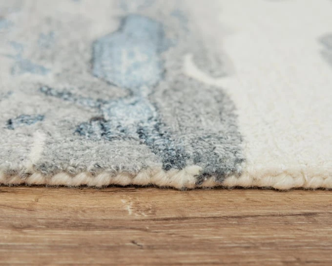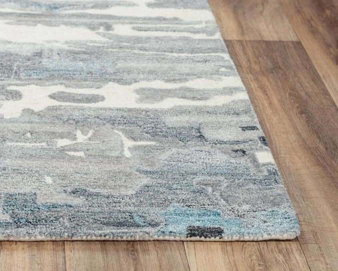 Calming shades of blue, grey, and ivory intermingle gracefully across this Rizzy Home Essence Abstract Rug — a welcome addition to any room in your transitional style home décor. This piece is hand-tufted using a blend of 80-percent wool and 20-percent recycled polyester that highlights the carefully placed accents. This rug has a dense construction ensuring a soft, yet firm feel under your feet.