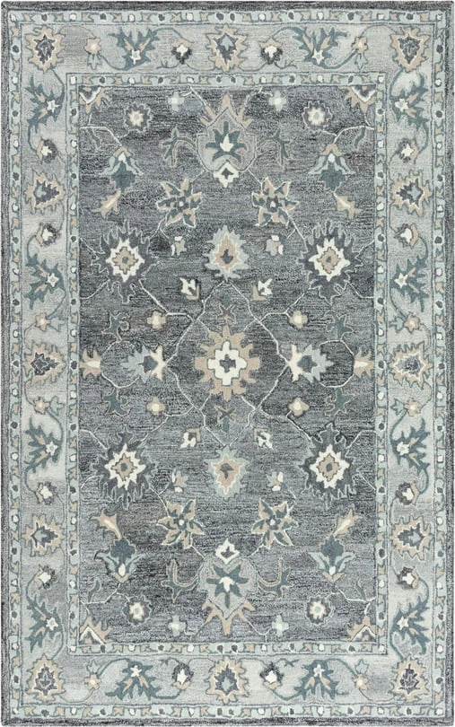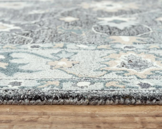Varied shades of grey make the perfect field for the beige and ivory floral designs of this Rizzy Home Essence Rug to quietly rest. Patterned after age-old Persian-style rugs, this piece combines a blend of hand-tufted wool and recycled polyester to ensure your rug will give you years of durable wear. The edges of this piece are fully bound for easy cleaning and make a wonderful additon to your transitional or traditional style home décor.