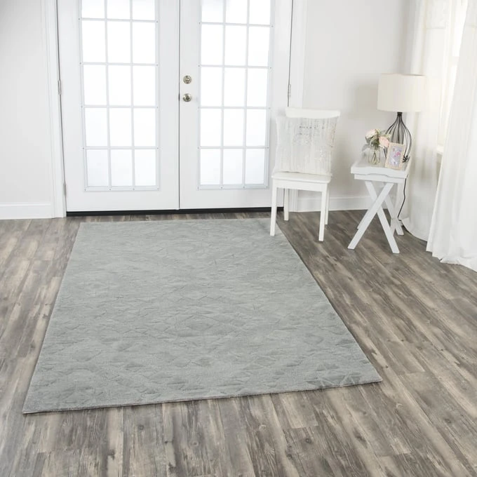 Mixing a fine, low, cut and loop pile in wool, makes this tone on tone rug a sophisticated choice that is easy to blend with most any upholstery or décor! The soft Gray color takes on lighter or darker tones depending on the angle it is viewed from making it even more versatile!