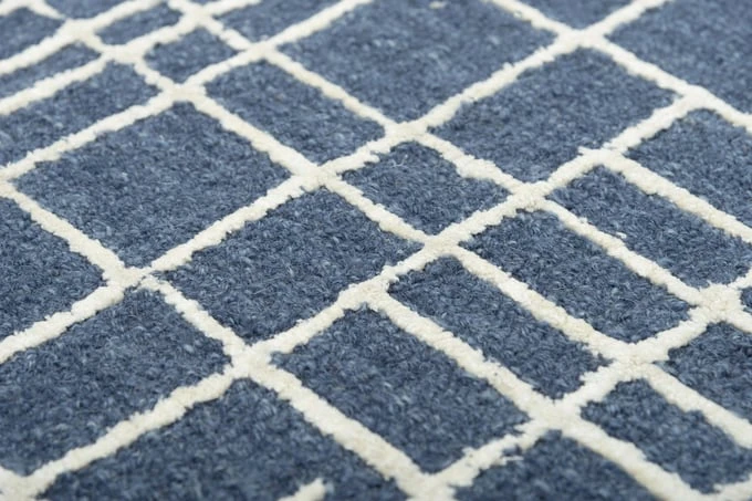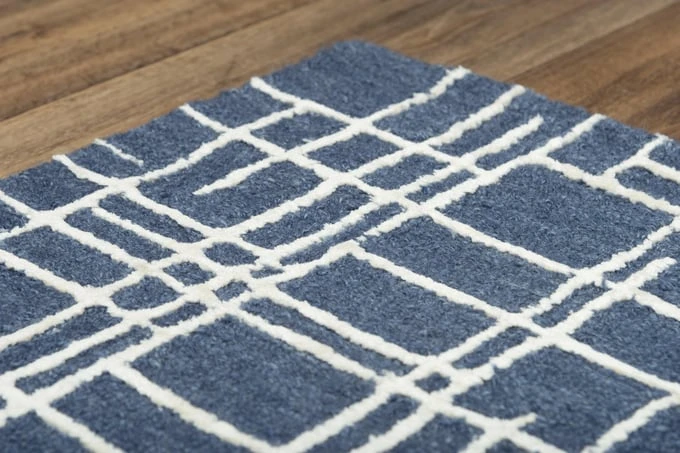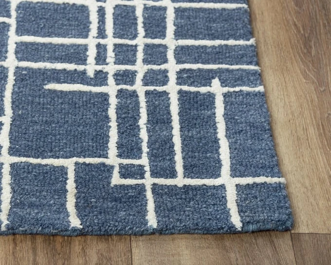 This chic blue and neutral ivory Rizzy Home Rug is multidimensional giving pleasure to both your eye and touch. The horizontal and vertical lines create squares and rectangles as well as some just ending . 100-percent Hand-tufted with care to give you both durability and allure, this rug, like the hand-serged edging, will be the finishing touch in any room in your modern or contemporary home or office décor.