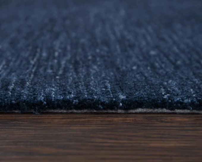 Add classic casual styling to your covered porch or entryway with the remarkable Rizzy Home Mason Park Navy Hand-tufted, Solid, Tone-on-tone Rug. Friendly to the planet, this piece is hand-tufted of 100-percent recycled polyester — for both the backing and the pile. The fabulous repurposed navy blue yarn is hand-tufted in alternating rows of loop and cut pile for added interest and finished with a clean edge.