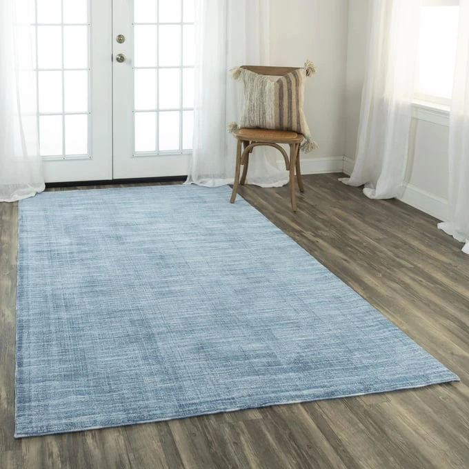 Make your home as welcoming and comfortable as your favorite jeans with this faded blue denim Rizzy Home Meridian Rug. Ecological 100-percent recycled polyester fibers are hand-loomed and the edges are hand-serged for quality and durability. Imagine this in your cabin, den, or family room or use it anywhere in your home or office with a coastal style dΓ©cor.