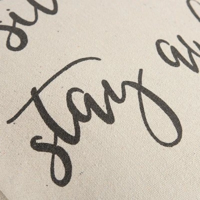 Add welcoming flair to your space with this Neutral Sentiment Decorative Filled Oversize Square Throw Pillow from Rizzy Home. This large throw pillow features the sentiment “Sit Down Stay Awhile” and gives an inviting feel to your space. The flanged edges add subtle flair, while soft fill provides ultimate comfort and support. Plus, the neutral color works wonderfully with casually styled interiors.