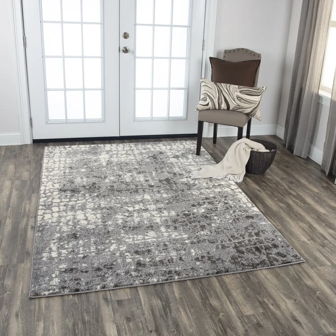 The Valencia area rug from Rizzy Home is a soft low pile frizze that brings a touch of elegance to it’s space. The subtle gray tones and watercolor looks evoke the feeling of marble or granite stones. These pieces are machine made in Turkey of 100% very soft polypropylene.
