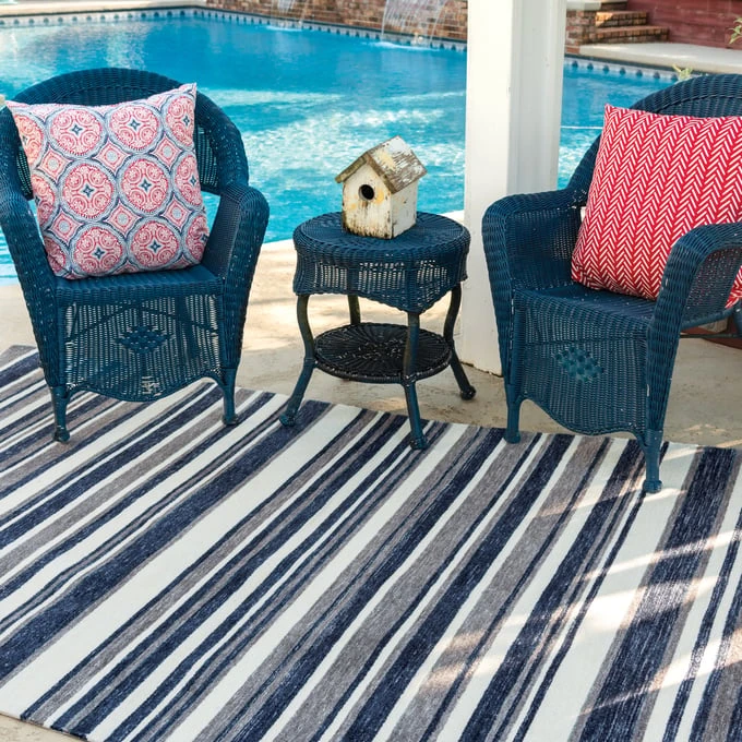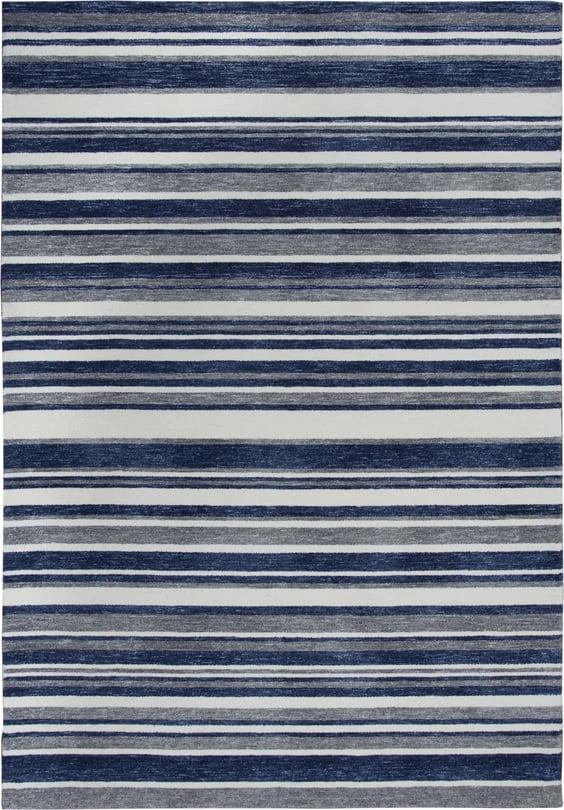 The classic stripe gets an upgrade with this Rizzy Home Villa Rug. Featuring horizontal lines that offset each other in blue, grey, and ivory — you’re sure to find a home in your decor for this stunning rug. The extra durable, water resistant, hand-tufted polyester material means that it’s perfect for semi-outdoor exposure or high traffic areas of your space.